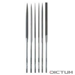 Pour le travail précis du métal et du bois. Manche ronds cannelé en acier. Dureté 64-66 HRC. Piqué croisé.