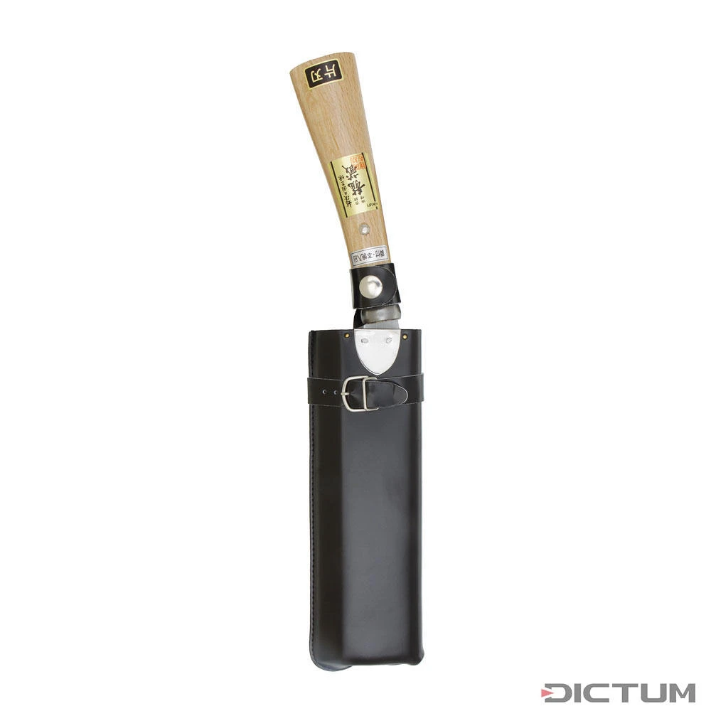Couteau d’ébranchage en acier au carbone de haute qualité pour l’entretien du jardin et de la forêt. Tranchant unilatéral à droite pour les coupes de dégagement proches du tronc. Avec fourreau et boucle de ceinture.