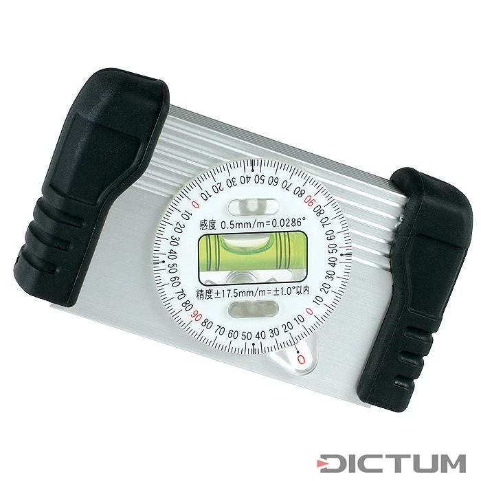 Niveau à bulle japonais compact, idéal pour mesurer avec exactitude les pentes et les inclinaisons, par exemple dans la menuiserie, l’aménagement intérieur ou l’installation de tuyauterie. Niveau rotatif avec échelle d’angle, de degrés et de pas de 0° à 90°, précision ±1°. Aluminium, rainures d’appui en forme de V (pour les tubes etc.), protecteurs en caoutchouc comme protection contre les chocs.
